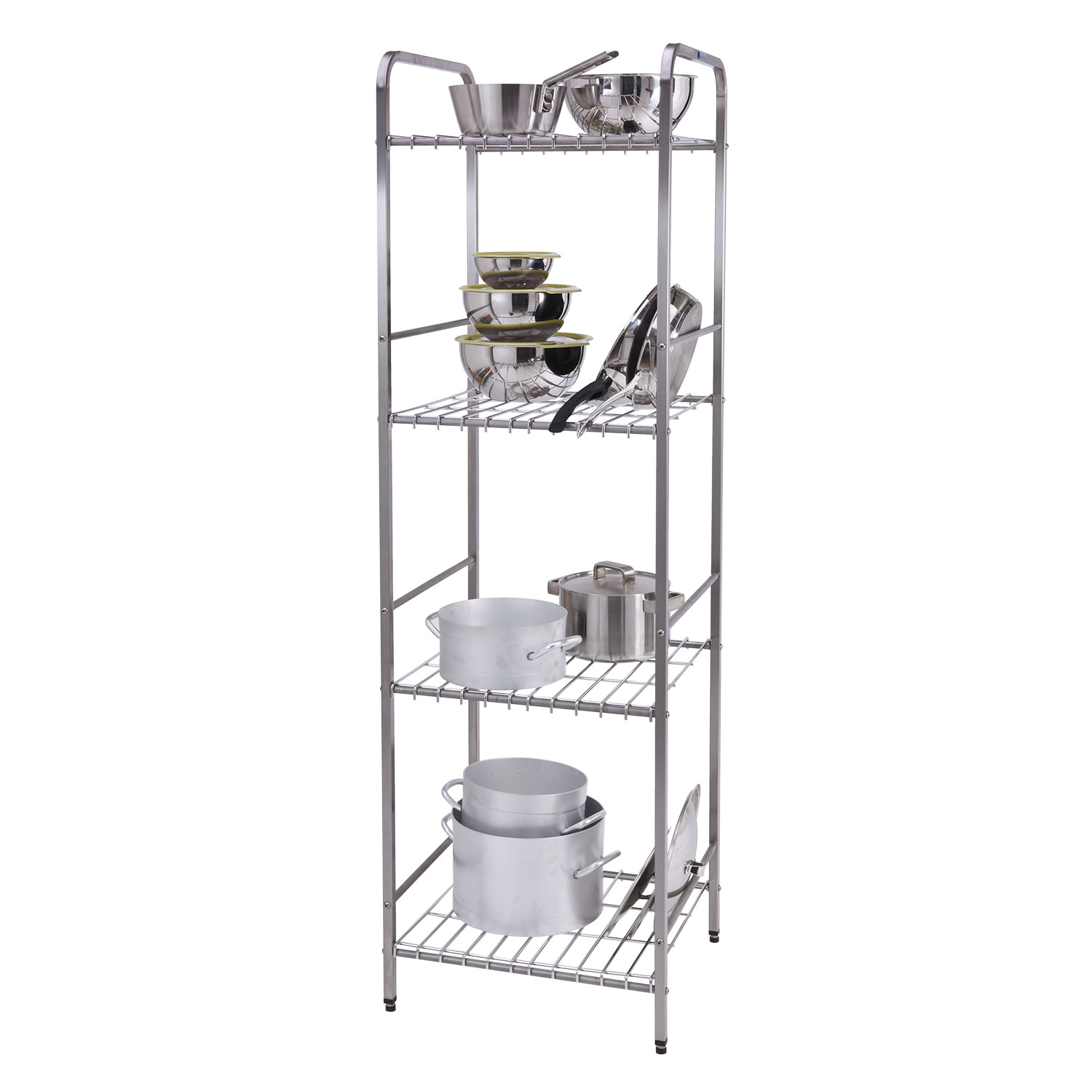– 4 riiulit – rst-konstruktsioon – riiulitasapindadeks roostevabad terasrestid – reguleeritavad jalad – riiulipostid roostevabast terasest torud 20x20mm