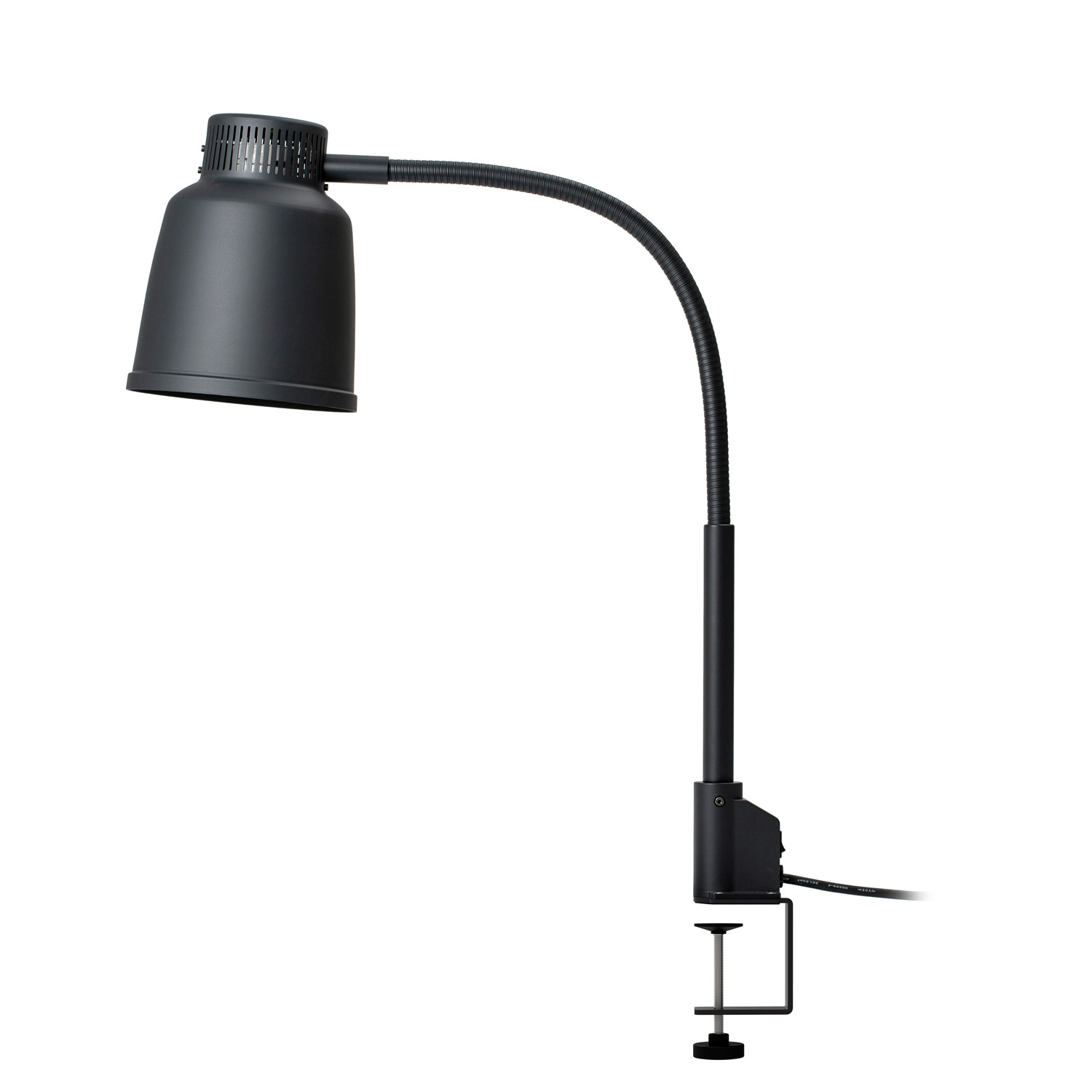 – lauakinnitusega soojalamp – kupli kõrgus 218mm, ø180mm, värvus matt must – Philips infrapunalamp 250W, 2700K – reguleeritav painduv vars, varre kõrgus 635mm – paigalduskõrgus 25-45cm serveeritava roa kohale – lauakinnituskruvi mõõdud 95x60x78mm