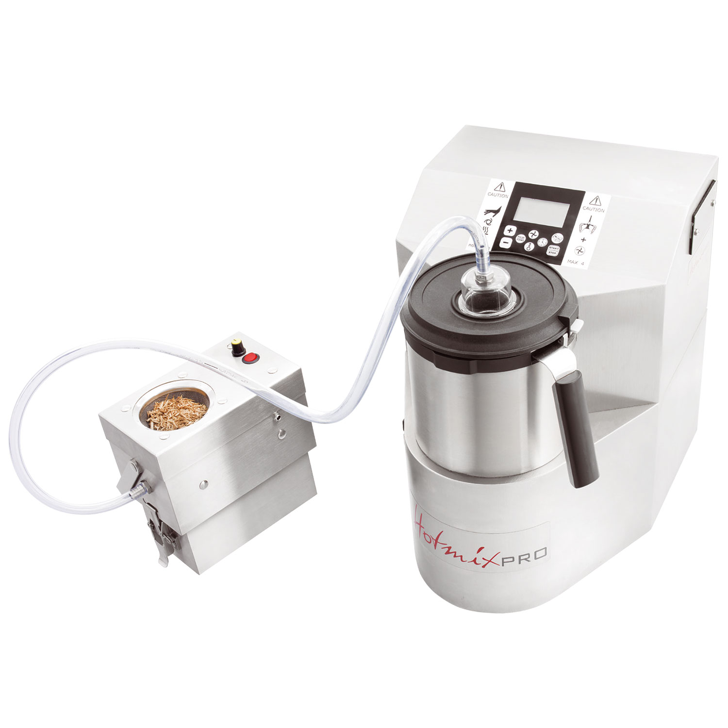 -Ainulaadses suitsutusseadmes Metos HotmixPro juhitakse suits vooliku kaudu läbi seadme vedelikunõus oleva vedeliku seadmesse.